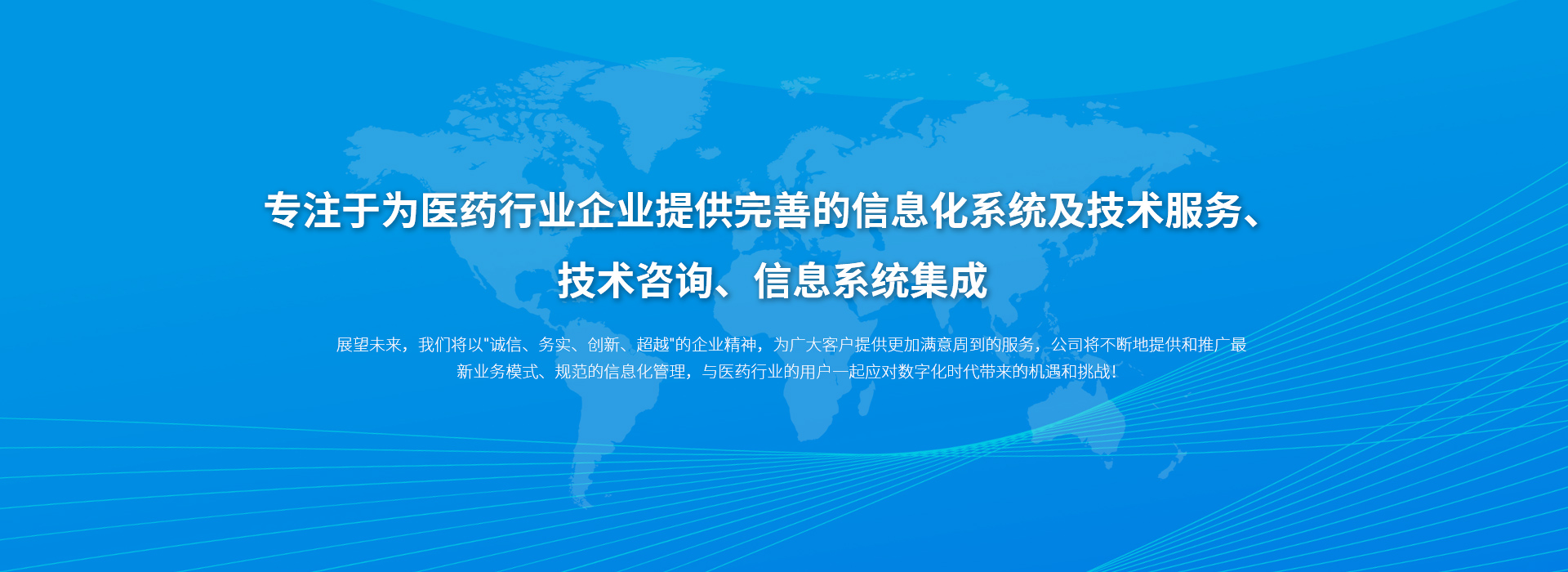展望未来,我们将以"诚信、务实、创新、超越"的企业精神,为广大客户提供更加满意周到的服务,公司将不断地提供和推广最新业务模式、规范的信息化管理,与医药行业的用户一起应对数字化时代带来的机遇和挑战!
